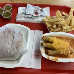 Oh yea this place is good. The 3 little tacos are like taquitos. Really good runny enchilada sauce on them with cheese on top served with crispy French fries. This place has been there forever and there's a good reason why. It was pretty busy too for a Tuesday afternoon. I will have to come back here again.,